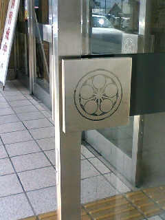 駅の出入り口の扉にまで、地元を治めた大名の家紋をはめ込む。