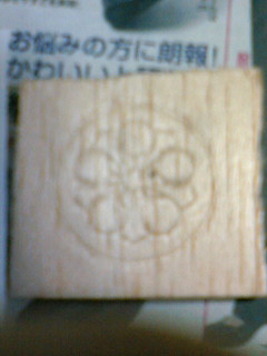 ホームセンターで柔らかめの板を買ってきて、家紋を写し取りました。